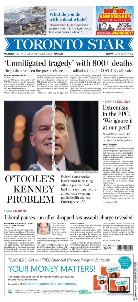 I’m a Toronto-based newspaper editor, designer and production manager who has worked on publications such as the Toronto Star, the Waterloo Region Record, StarMetro, Torontoist.com, Toronto Life, and for Pagemasters North America on clients including the Globe and Mail, the Virginian-Pilot and the Daily Press. See below for a sampling of newspaper pages designed by me.